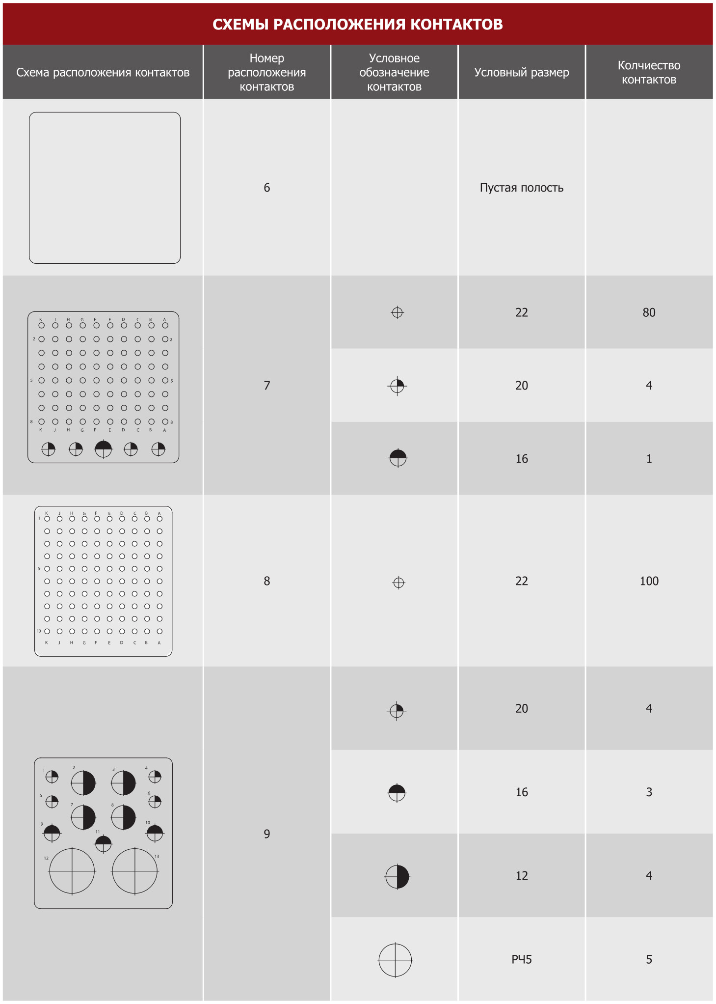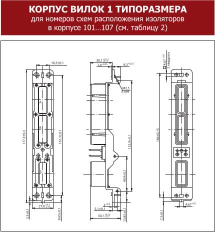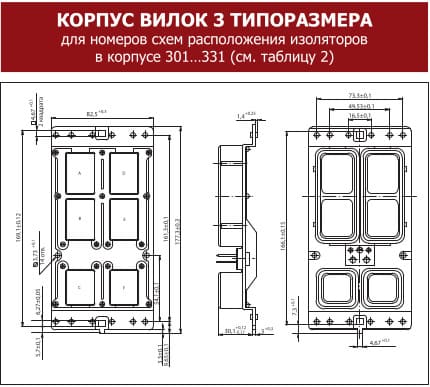 Схемы расположения изоляторов в корпусе (см. схемы расположения изоляторов в корпусе соединителя) |